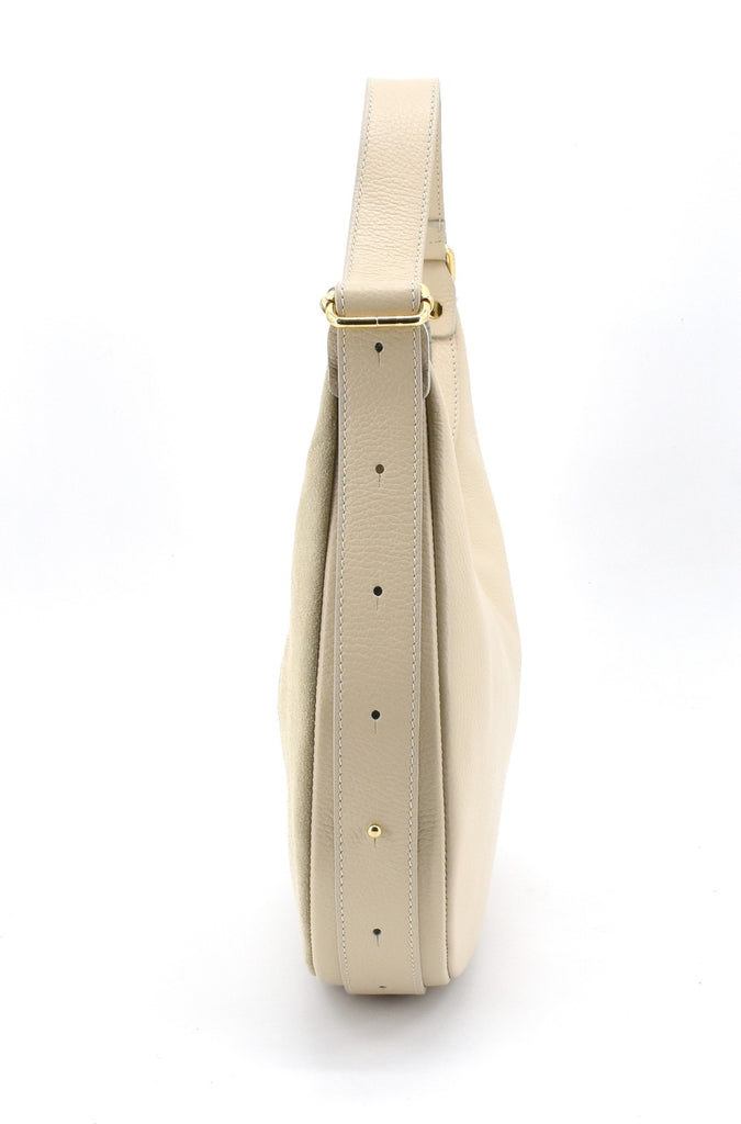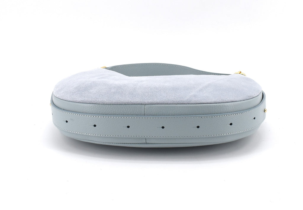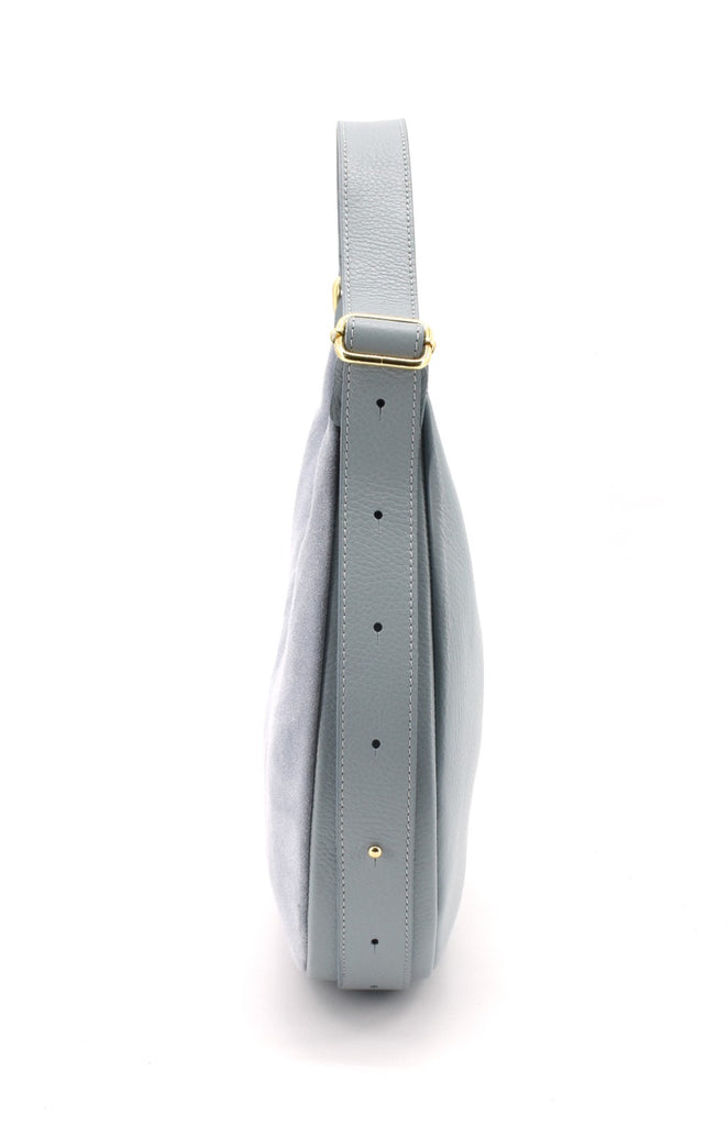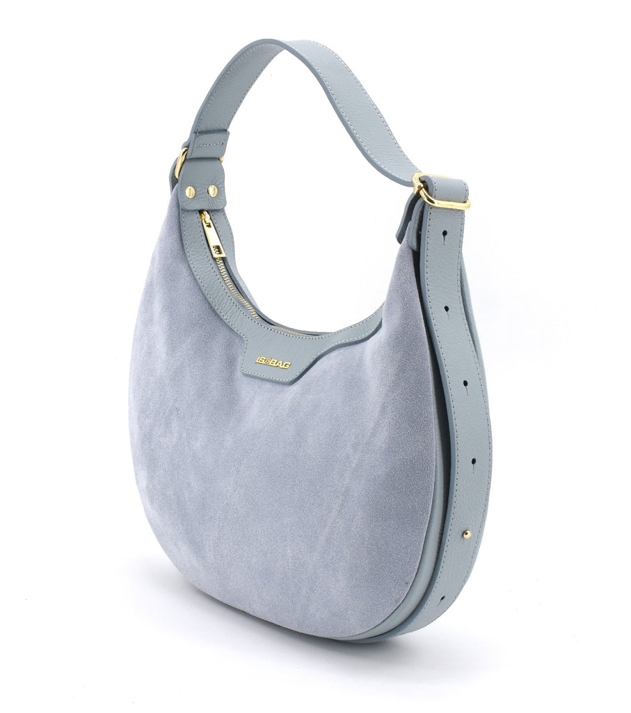Borsa made in Italy in pelle scamosciata molto morbida al tatto ma in grado di rimanere nella sua forma originale anche da vuota, la tracolla ha la lunghezza variabile, la parte su retro è in pelle di vitello cosi da risultare più pratica indossata