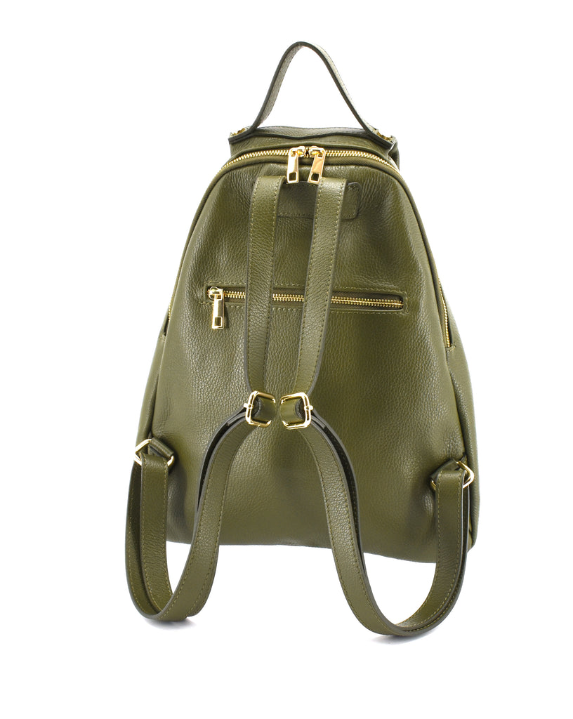 Pratico zaino in pelle di vitello effetto “dollaro” con tasca esterna e tasca di sicurezza sul retro, quando lo zaino è indossato la tasca rimane invisibile e sicura. Un accessorio perfetto per un utilizzo quotidiano con stile e praticità.
