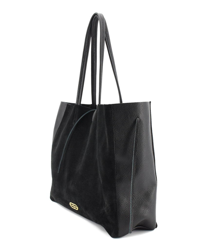 La SHOPPING Gemonio è una borsa a spalla realizzata in pelle di vitello che si caratterizza per la chiusura con linguette in pelle annodabili. (Altezza 32 cm, lunghezza 38 cm, profondità 12 cm) - PESO 590 GRAMMI