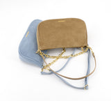 Realizzata in morbida pelle scamosciata. La classica "baguette" borsa adatta per ogni occasione: sia elegante con la catena dorata, sia casual con le due tracolle removibili.