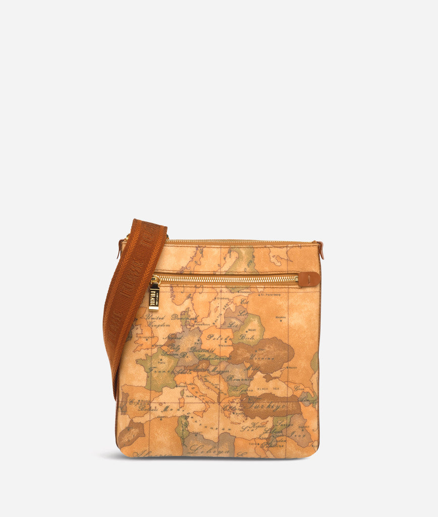 Bandoliera unisex in tessuto stampato con cartina geografica Geo Classic, con tracolla regolabile in nastro con logo 1ᴬ Classe, tasca frontale con zip, chiusura con zip. Con la sua forma piatta è pratica e funzionale, ideale per il tempo libero, per lei e per lui.