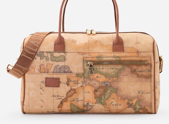 Perfetto per weekend fuori porta e trasferte di lavoro, il borsone da viaggio in tessuto Geo Classic rifinito da dettagli in pelle liscia è la chiave per viaggiare con eleganza e praticità. Con manici in pelle e una tracolla rimovibile in nastro logato per una doppia portabilità, è provvisto di tasche interne ed esterne e sfoggia il patch in pelle con logo 1ᴬ Classe impresso a caldo. Abbinalo ai beauty case della Linea per un look da viaggio coordinato e funzionale.