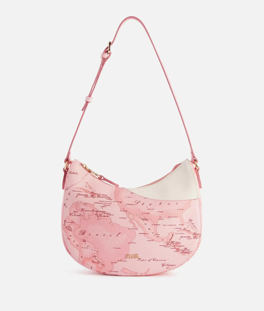La mappa del brand trasporta nella variopinta e rigogliosa isola di Bali, evocata dalle sfumature rosate della borsa sottospalla Geo Magnolia. L'inserto in tessuto saffiano Avorio rende il design armonioso valorizzando le linee stondate del modello, provvisto di uno spallaccio regolabile. Il logo 1ᴬ Classe e la metalleria in oro chiaro impreziosiscono il design, completando questo modello daily dallo spirito raffinato e floreale.