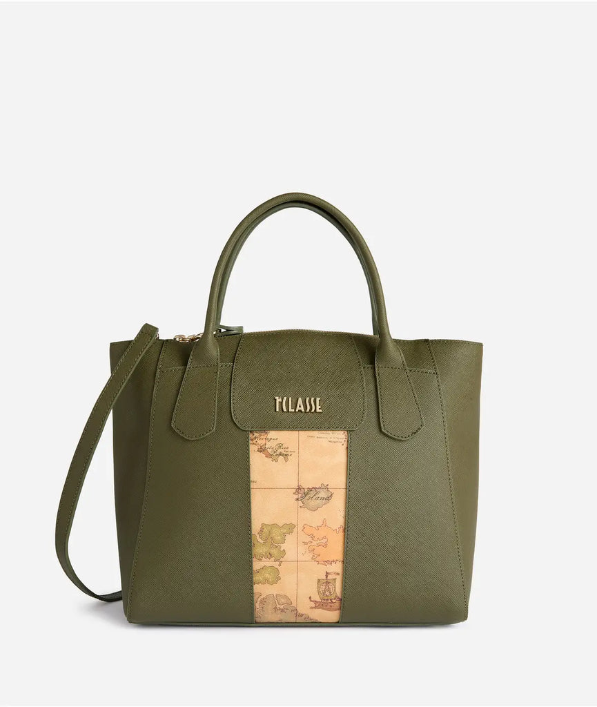 Realizzata in tessuto saffiano, la borsa a mano grande Windy City si ispira alle affascinanti città scozzesi: le architetture slanciate dalle finestre verticali si riflettono nel design del modello, caratterizzato dalla toppa sagomata con maxi logo 1ᴬ Classe che sovrasta l'inserto nell'iconico tessuto Geo Classic. La nuova modelleria a T con tasche interne e testa leggermente bombata offre un'ottima capienza, mentre la portabilità è versatile grazie ai manici e alla tracolla rimovibile. Un'alleata quotidiana dall'eleganza minimal che completerà ogni outfit con gusto.